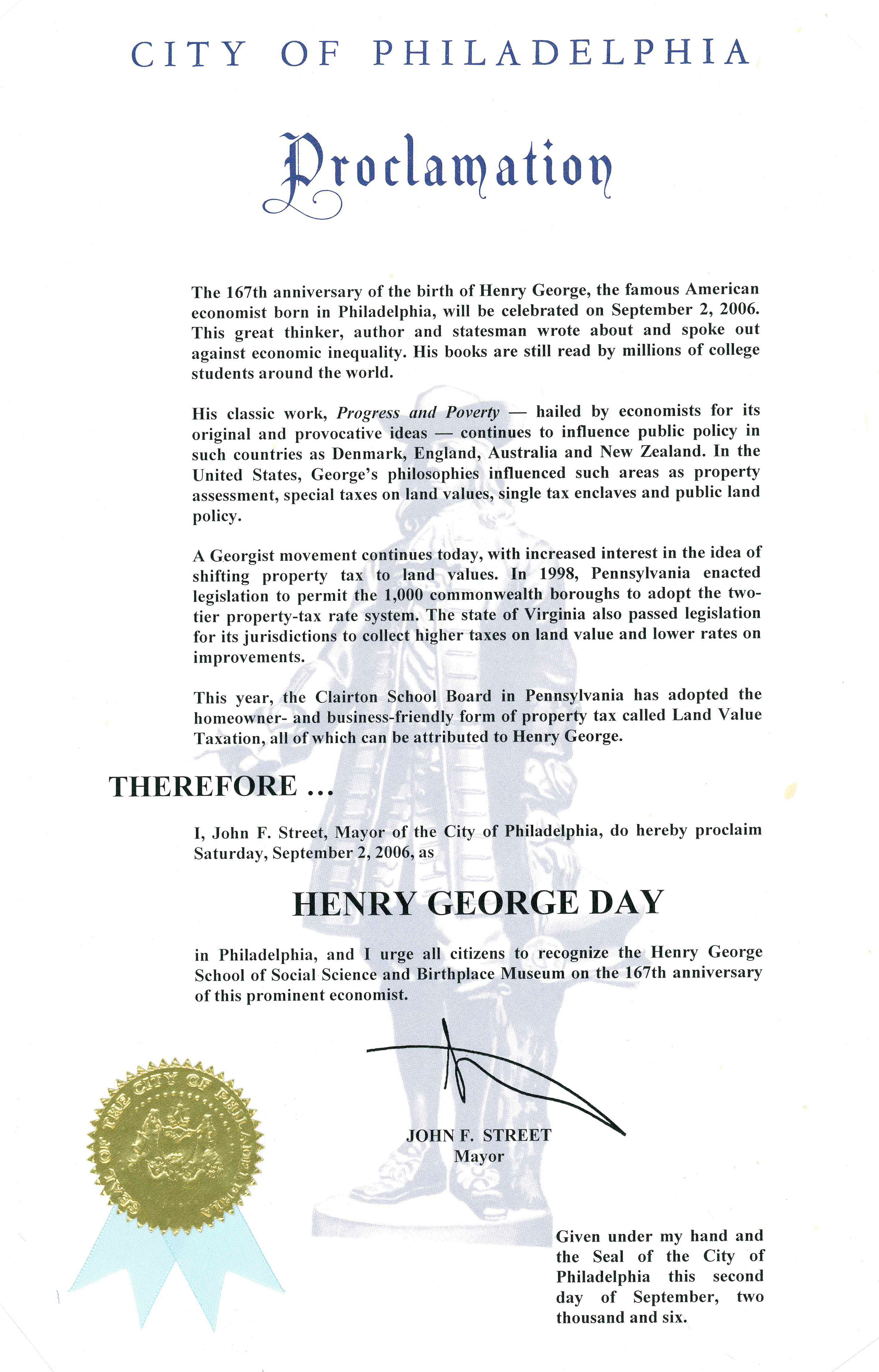 September 2, 2017 marks the 178th birthday of Henry George. Here is how some have honored him on past birthdays: