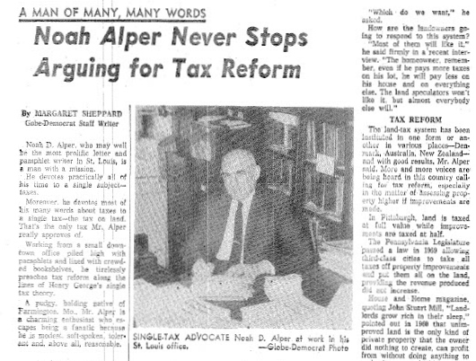 Noah Alper of the Henry George School of Social Science-St. Louis Extension served as President of the PREC from the early 1950s through the 1970s. Alpers’ correspondence and other writings are found in Series One of this collection. Stanley Frederickson, whose correspondence and writings are found in Series Two, was Executive Director of the PREC throughout the 1980s. Series Three of this collection contains material published or reproduced by the PREC including annual reports and brochures.