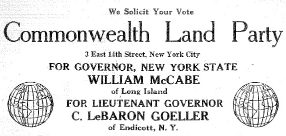 The CLP spread to other countries including the United States. In 1924, the Single Tax Party of the USA became the Commonwealth Land Party and adopted the following platform: