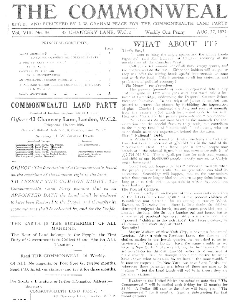 J.W. Graham Peace, “A Message to Georgists” (1928)