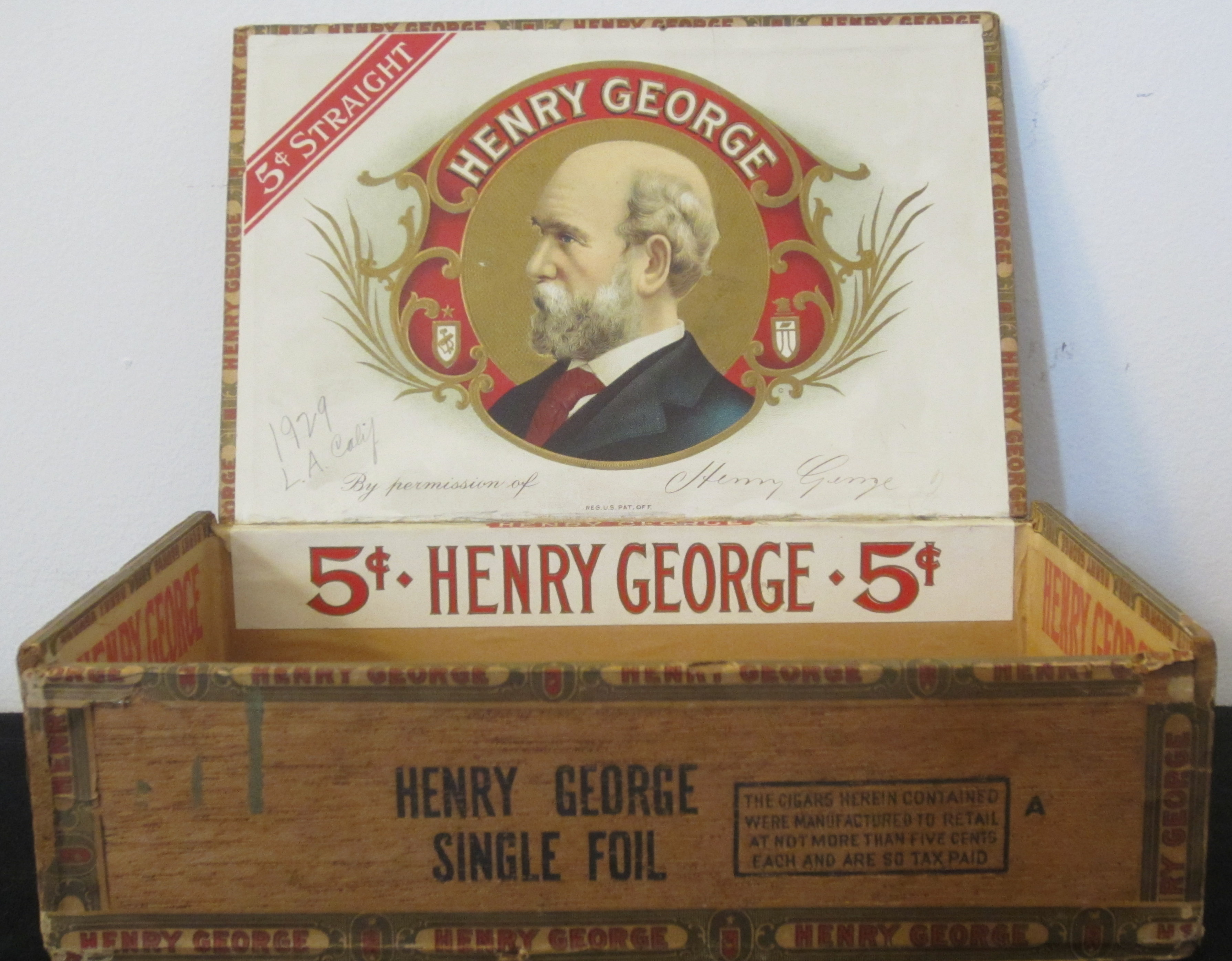 Through a chance purchase of some sheet music, I found out that Consolidated Cigar Corp sponsored a radio program on CBS in the 1930s, “The Henry George Program.” The theme song was “Smoke Your Troubles Away.” From what I can infer from the publicity stills and captions on the back page, it was a comedy about a small hotel, amongst whose staff were two bellboys, “Henry” and “George.” I imagine a comedy about a progressive economist proved unworkable.