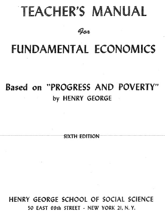 Teacher’s manual for Fundamental Economics based on Progress and Poverty, Sixth Edition