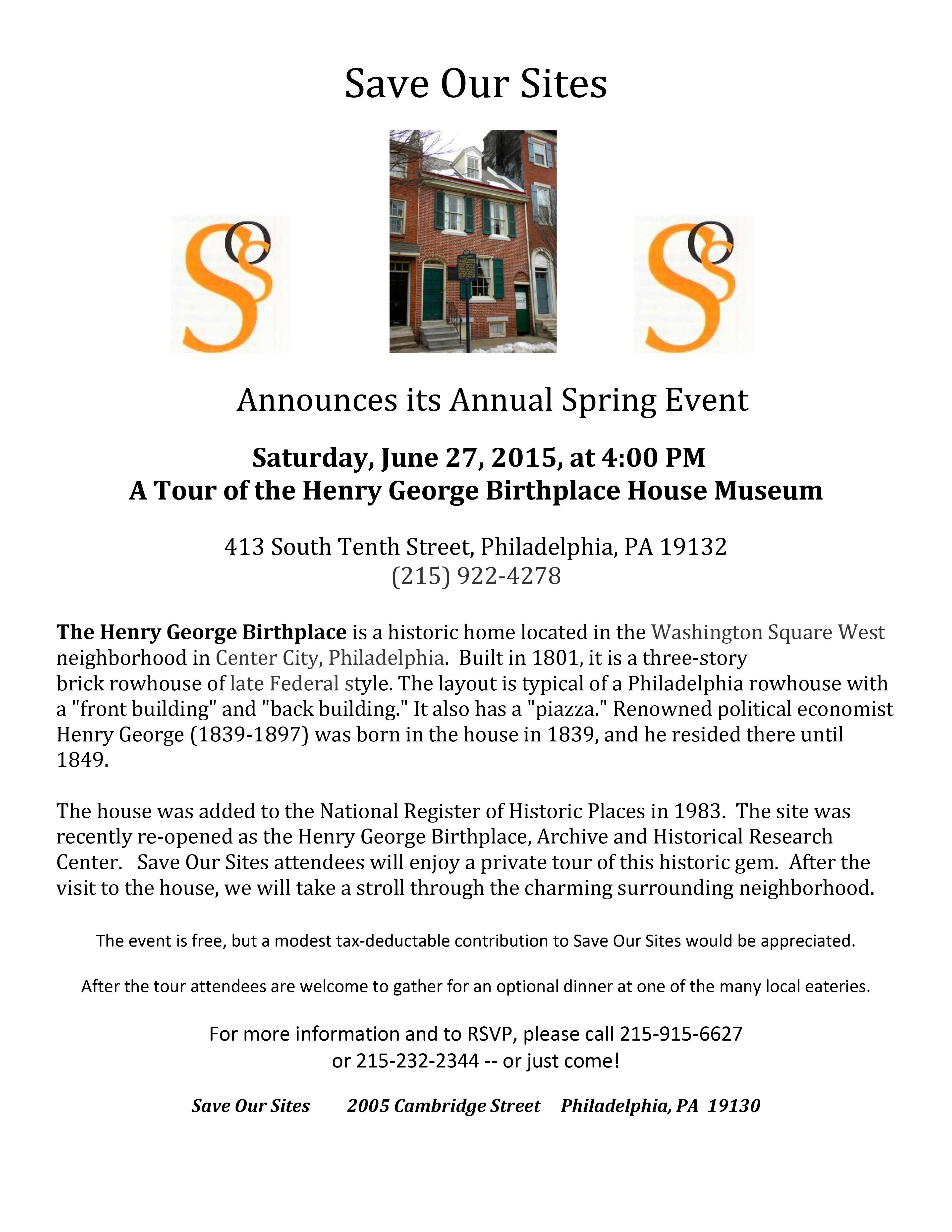 Save our Sites Annual Spring Tour Share this: Click to share on X (Opens in new window) X Click to share on Facebook (Opens in new window) Facebook Like Loading...